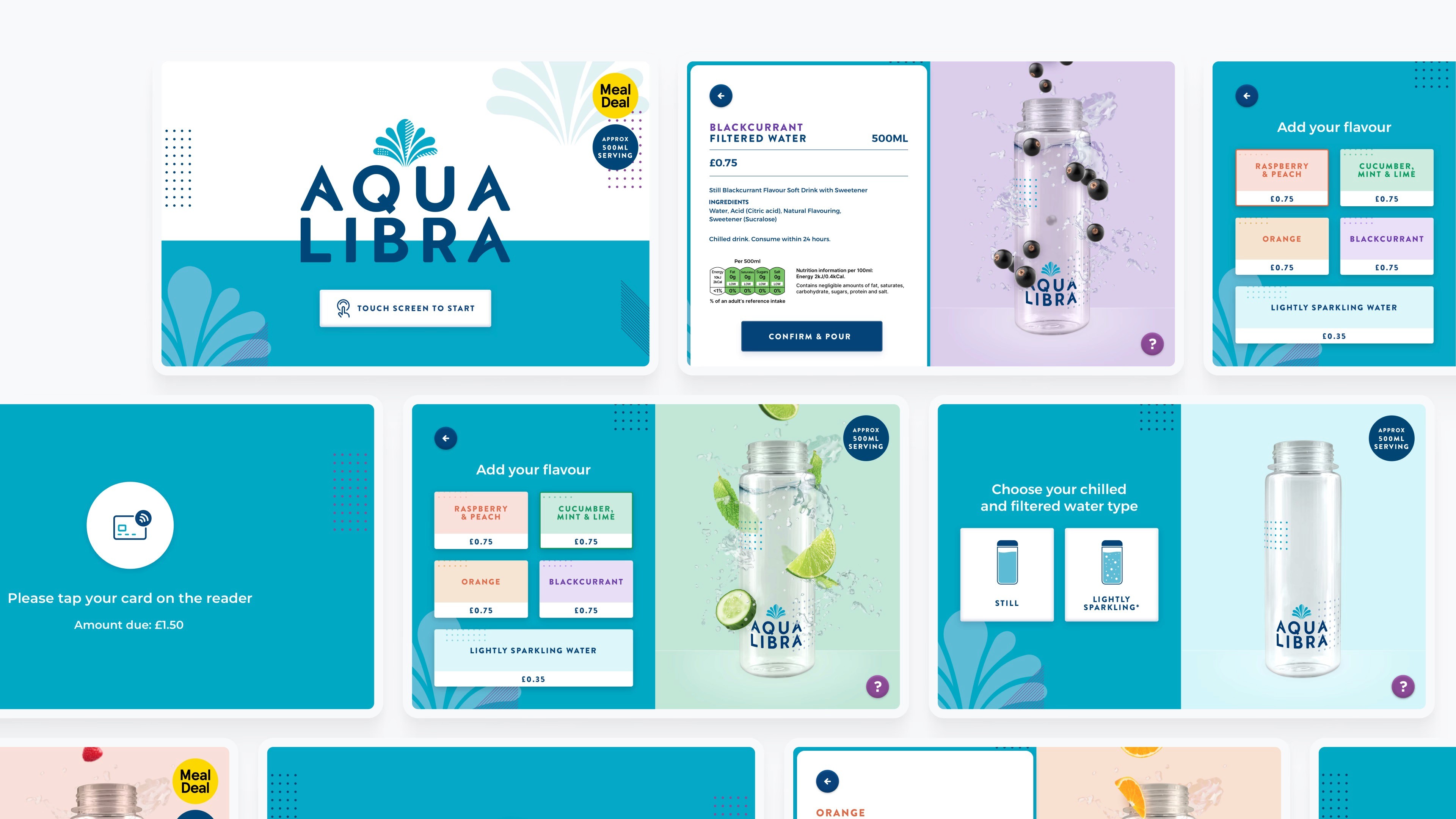 Aqua Libra set out to reinvent how people hydrate by replacing single use plastic bottles with a smarter, more sustainable and more engaging experience. The Flavour Tap was their answer, a beautifully engineered device that delivers filtered still, sparkling and flavoured water on demand. The team was brought in to design the entire digital layer of the Flavour Tap, creating a seamless experience from first touch to final pour. The work spanned the full product ecosystem, including both the tap interface and a responsive back office portal.